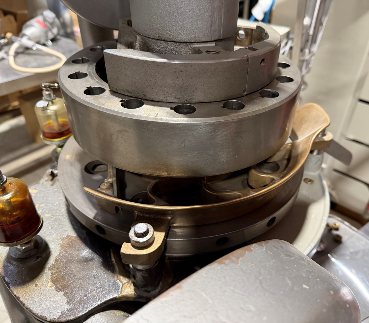 Used Manesty Model B3B 16 Station Rotary Tablet Press with keyed Turret Head, Feed Frame and Hopper.