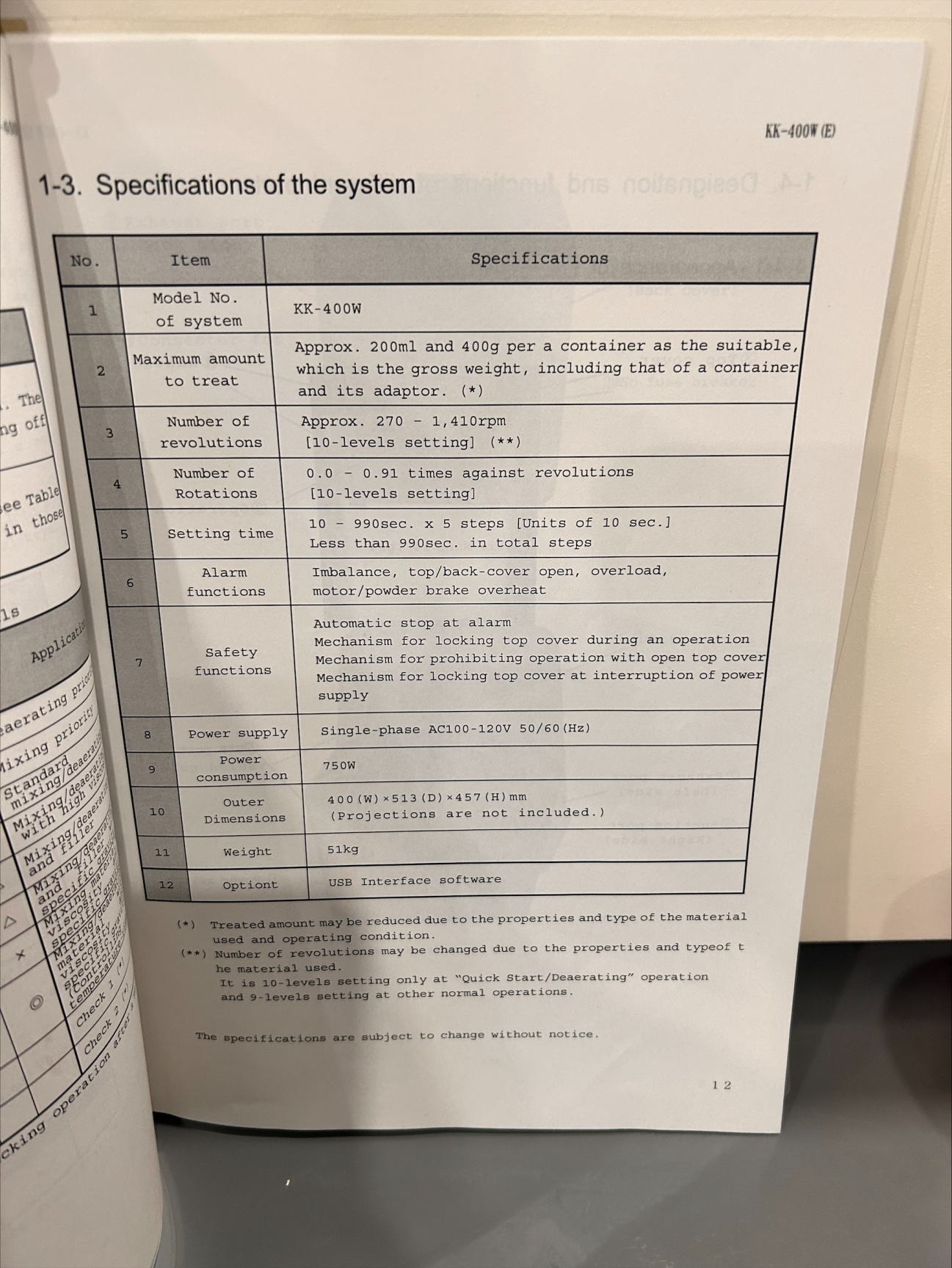 Manufactured in 2018 and only has about 500 hours of working time on it. (Sells New from $42K) Key Features: • Functions: Simultaneous mixing and air removal for consistent, high-quality results • Controls: Easy-to-use digital interface with programmable speed, rotation, mixing time • Applications: Perfect for Labratory, Pharmaceuticals, cosmetics, adhesives, electronics, food R&D, and other formulations requiring uniform mixing without contamination. Approx. Maximum Capacities 200ml and 400g per container gross weight. RPM approx. 270 – 1,410 (10 level settings) Electrics; 1 Phase / 60 Hertz / 120 Volts, 750W With Safety Senor Alarm Stops. Overall Dimensions: 400 W x 513 D x 457 Height (MM), approx. 50Kg Delivery Time: approx. 1 Week. In Good Operational Condition Featured Location: Toronto | |