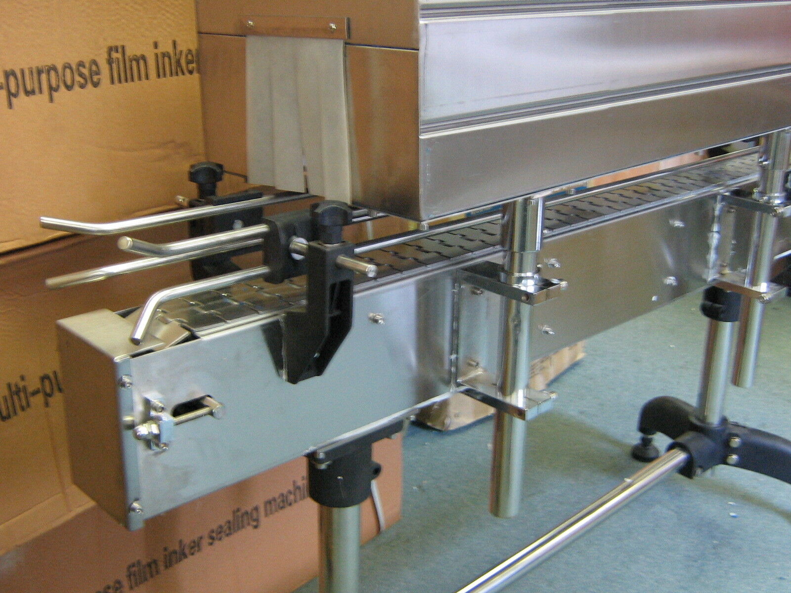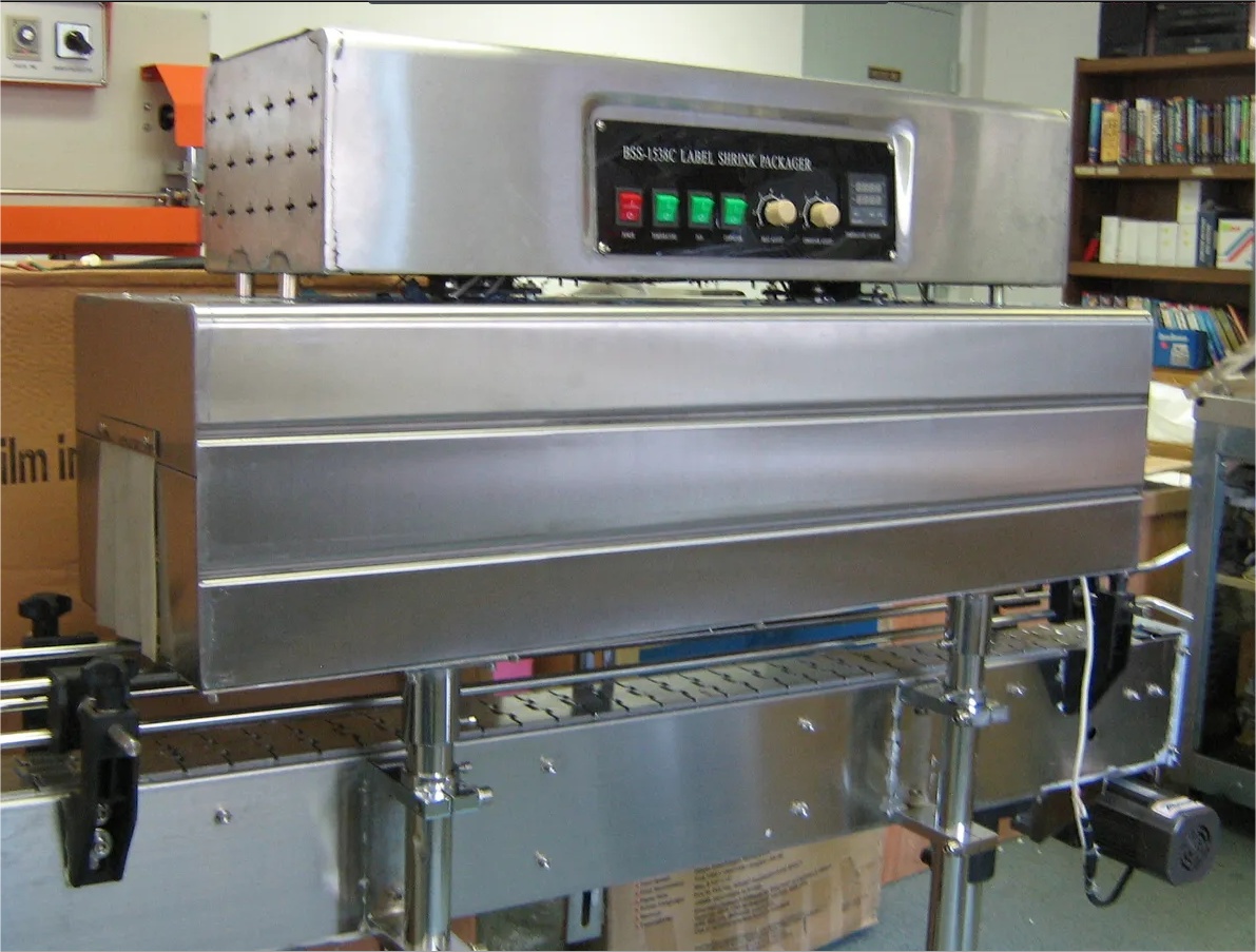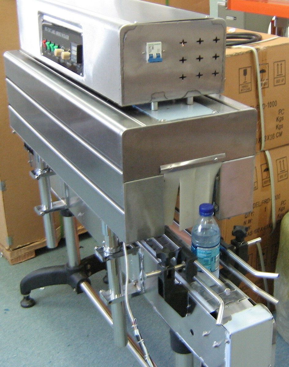New Neck Band Shrink Tunnel Model BSS-1538C. Unit is used mainly to shrink label products onto the neck area of glass or plastic bottles. Comes with Shrink Temperature and Adjustable Conveyor Speed Controls. Can be used with the following films: POF, PVC and PP. Tunnel Size measures 40” L x 6” W x 15” H. Can handle containers up to 4.2” W x 14” H, 15Kg. Overall dimensions of the unit are 60” L x 14” W x 60” H, 90Kg. Electrics: 220 Volts, 7 KW, CE. Delivery Time: 3 weeks from receipt of payment. Short Test Video: https://www.youtube.com/watch?v=mtp4FLZoMm0 Location: Factory | |