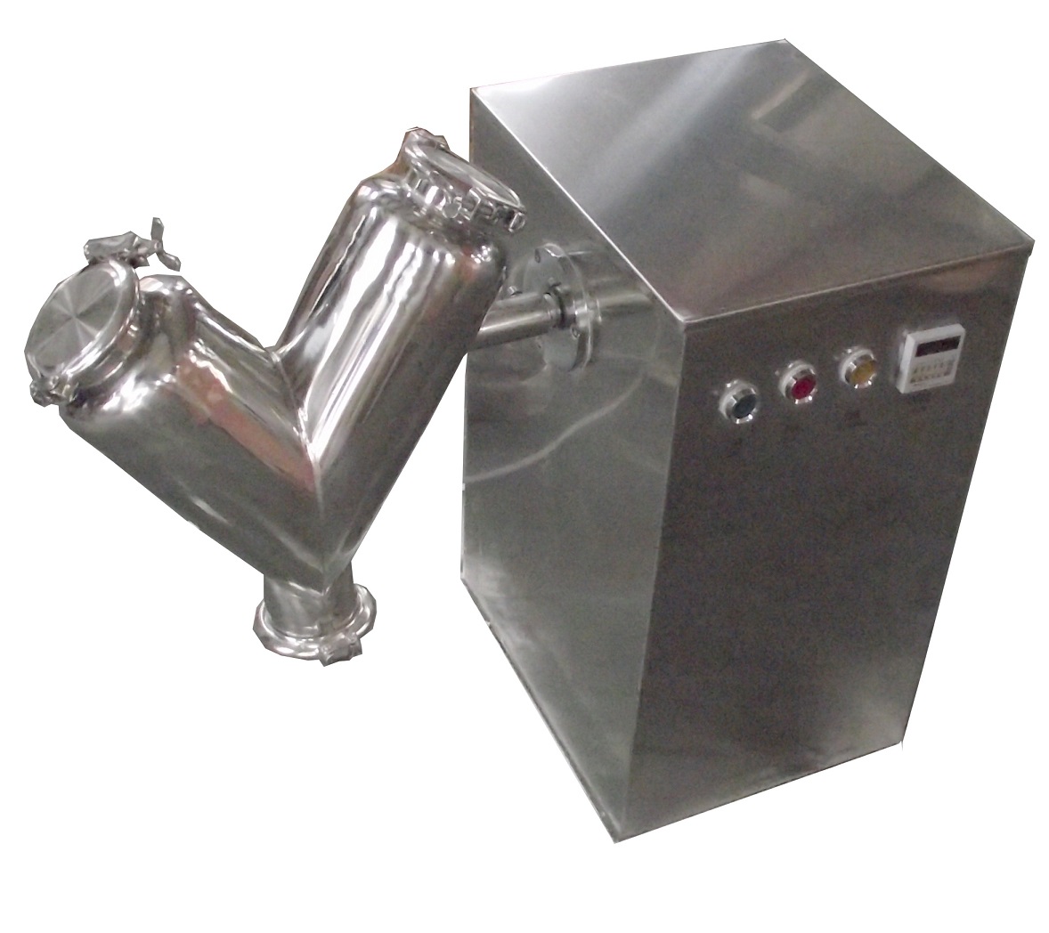 The shell and frame are constructed of 304 Stainless Steel. Specifications: Overall V Shell size 20 Litres and Total Mixing Effective Volume: 12 Litres, Maximum Mixing Weight: 9Kg. Rotation Speed: approx. 20 RPM, mirror polished 304 S/S mixing vessel & housing. With Start/Stop/Jog and Variable Speed Drive. Electrics: 1 Phase / 60 Hertz / 110 Volts, .55Kw, CE. Overall Dimensions: L*W*H is 985mm x 340mm x 860mm, approx. 90Kg. Delivery Time: approx. 6-8 weeks. *Note: We can have custom built Shells and can make multiple removable/interchangeable. Specify Size based on Customer Specifications.(price may vary) OPTIONAL: Can customize or add Intensifier Bar and/or Liquid Spray Nozzles. Location: Toronto or Factory | |